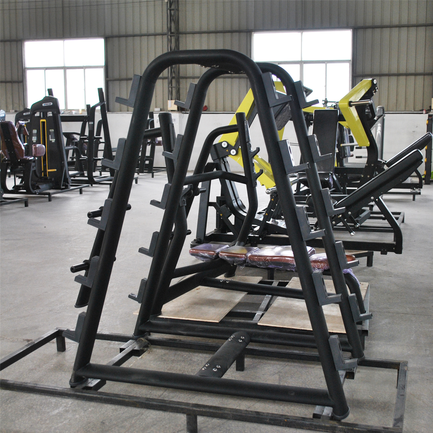 Secure and organize your barbell collection with the AN61's specialized storage design that accommodates 10 barbells in minimal floor space. The reinforced construction and protective coating ensure long-term durability.