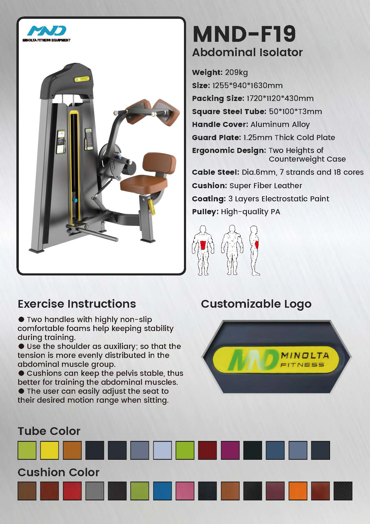 Focus on building a strong and defined core. The F19 is engineered to isolate the abdominal muscles through a controlled curling motion, promoting core strength and muscular definition.