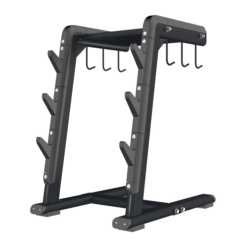 A cluttered gym is an inefficient and hazardous one. This rack keeps essential accessories off the floor and within easy reach, improving the user experience and operational flow.