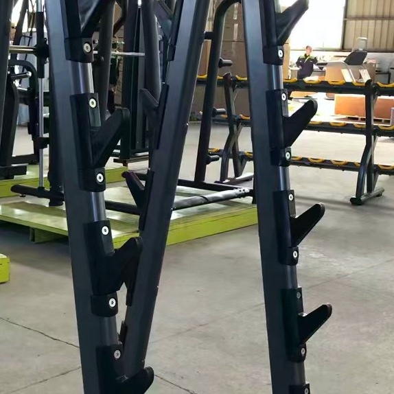 Protective Angled Hooks: The rack features hooks covered with engineering plastic that cradles the barbell shaft, effectively protecting the delicate knurling from scratches and the bar finish from metal-on-metal contact.