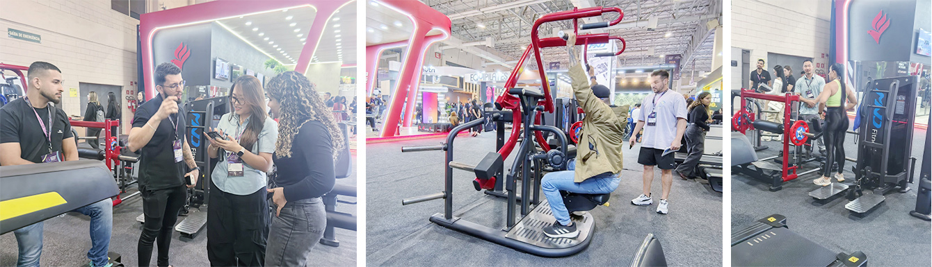 The company showcased its products in a striking 36-square-meter booth (Booth #54), which was a major hub of activity throughout the event. The booth was consistently packed with visitors, drawing a steady stream of gym owners, distributors, and professional trainers from across South America who came to experience and inquire about our popular fitness equipment. The meeting area was occupied at all times, buzzing with productive discussions.