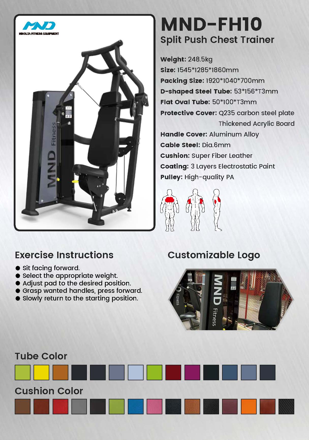 The FH10 Split Push Chest Trainer elevates chest training by isolating each pectoral muscle independently. This advanced training modality is crucial for correcting imbalances, improving stability, and achieving a truly symmetrical and powerful chest.