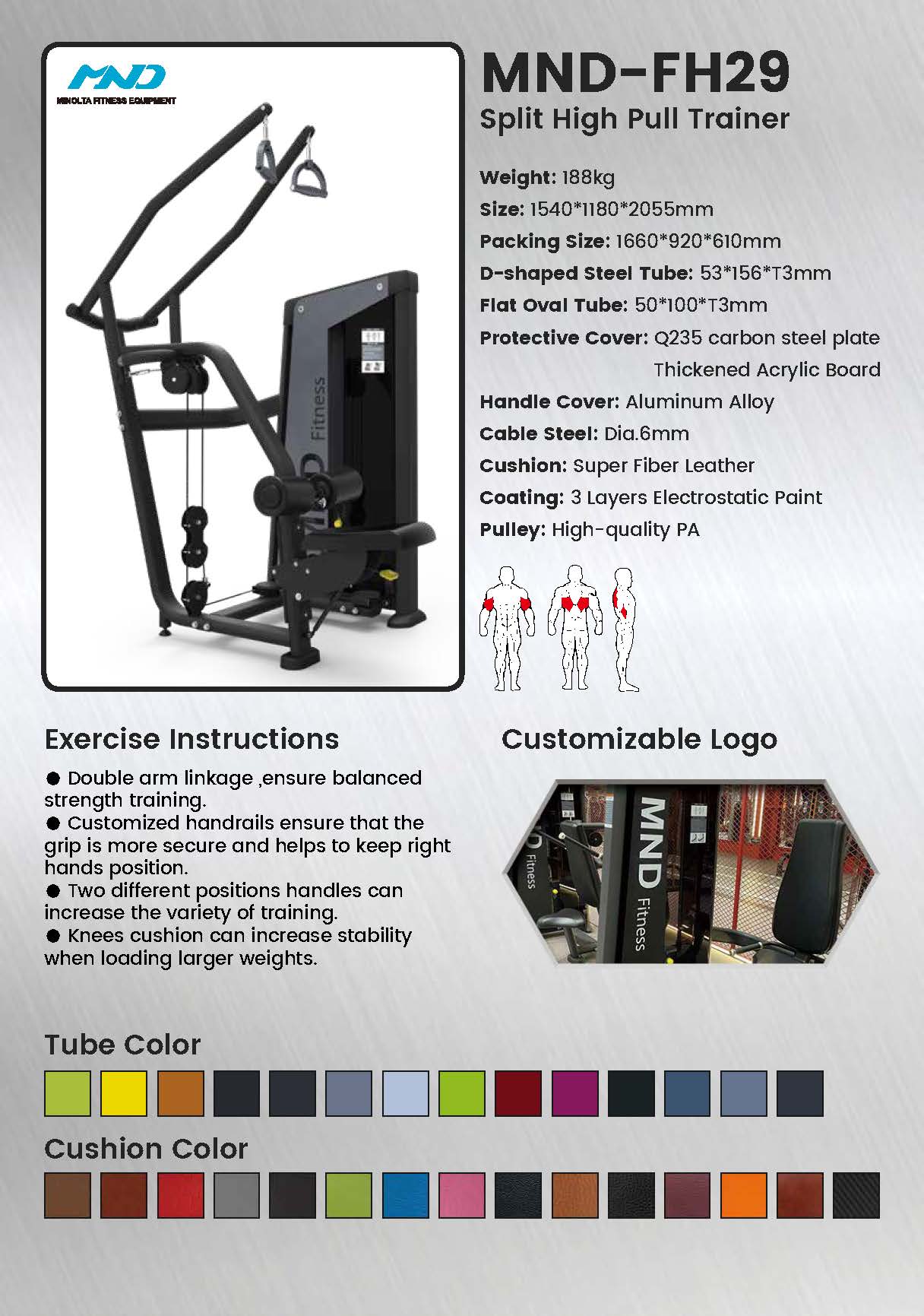 The FH29 Split High Pull Trainer addresses muscular imbalances by allowing each arm to work independently. This advanced training modality is crucial for developing symmetrical strength in the often-complex muscles of the upper back and shoulders, enhancing both aesthetics and functional performance.