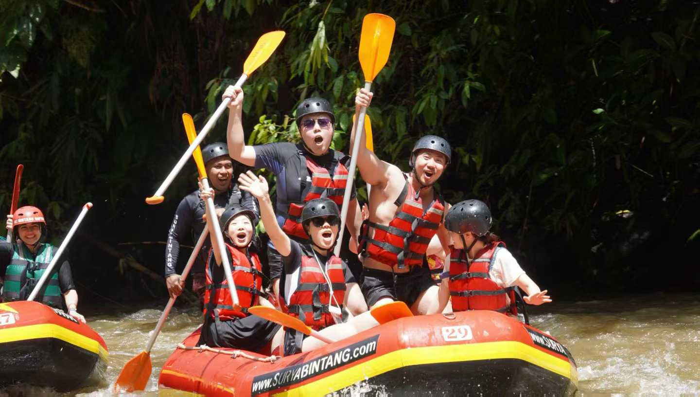 As professionals in the fitness equipment industry, the team integrated the spirit of sports into every aspect of the journey. Early in the morning at Lovina Beach, they collectively pursued dolphins, experiencing the tacit understanding and seamless coordination of teamwork at sea. During the Ayung River rafting, they showcased precise teamwork and synchronization. The snorkeling exploration at Nusa Penida Island further reflected the team's deep practice of sports and health philosophies.